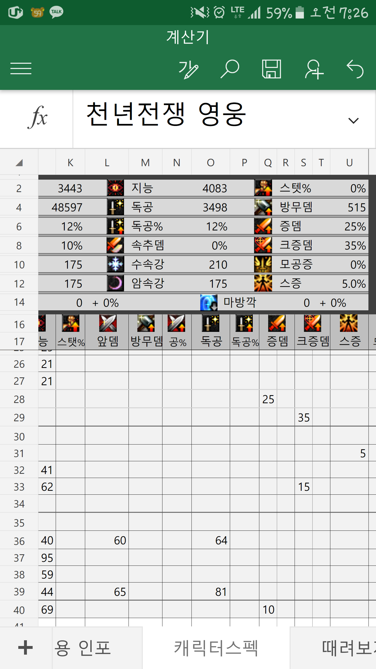 2. 천년전쟁-풀아머 증댐 겹치는건 정상적으로 무시되고 있습니다 구조는 증크증 칸을 보시면 두개의 칸이 있는데 max로 받아들이는 일반 증크등뎀과 sum으로 받아들이는 추가 증크증뎀으로 나뉩니다. 그리고 절대 사소하지 않습니다 ㅠ 이거 제가 아이템 db 정리할때에 칸 한칸 옆으로 적어놓으면 증뎀이 추증뎀 크증이 추크증이 되버려요 ㅋㅋㅋㅋ 이런 제보는 반드시 해주셔야 합니다 0.95버전의 황갑5셋옵이 위와 같은 문제로 추크증으로 적용됬었거든요 ㅋㅋㅋㅋ 3. http://m.gamechosun.co.kr/board/view.php?site=df&bid=job8&num=2371220&cate=6&col=nickname&kw=%EB%8C%80%EB%9E%B5 지금은 버그랑 정확도때문에 세부적인 수식은 조금씩 바꼈는데 제 계산기의 기본적인 틀은 저러합니다. 만약 저기 적혀있는 함수 다 이해하실수 있으면 배포판 말고 잠금 풀려있는 거 개인적으로 보내드림 4. 현재 부케배메 셋팅에서 2700/40/14 버프받고(인던 감안해서 3000으로 입력) 에게느 헛잡때 때리는 딜표입니다. 저정도면 헛잡킬은 안나도 1꿍킬은 가능해요. 어디까지나 "이론상"임. 진짜로 저템끼고 쩔공가서 터트려먹지 맙시다 ㅋㅋㅋㅋㅋ 제가 대리로 받은 계정이 누골일당이 버닝기준 2.8억뜨는데 솔게느 하면 200-300줄남고 1꿍킬함 그리고 가장중요한건.. 이글은 출근길에 작성되었습니다. ㅋㅋㅋㅋㅋㅋㅋㅋㅋㅋ 던파하게 해줘... from Mobile