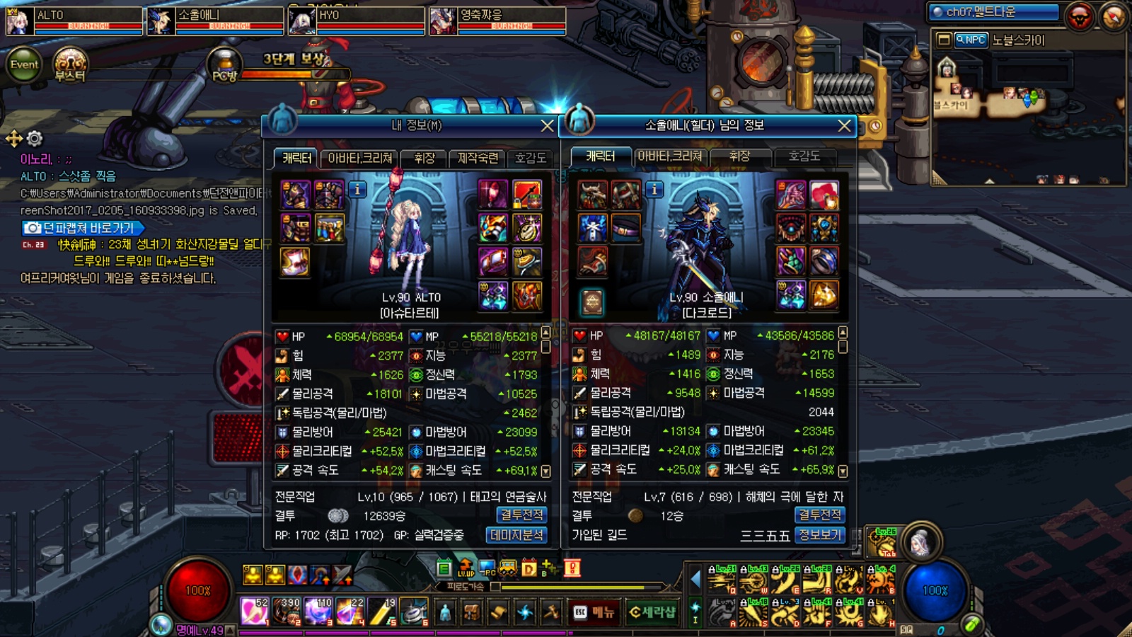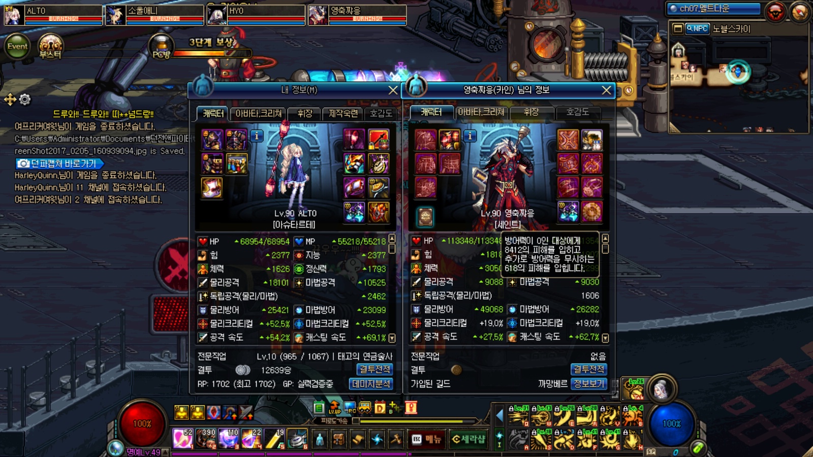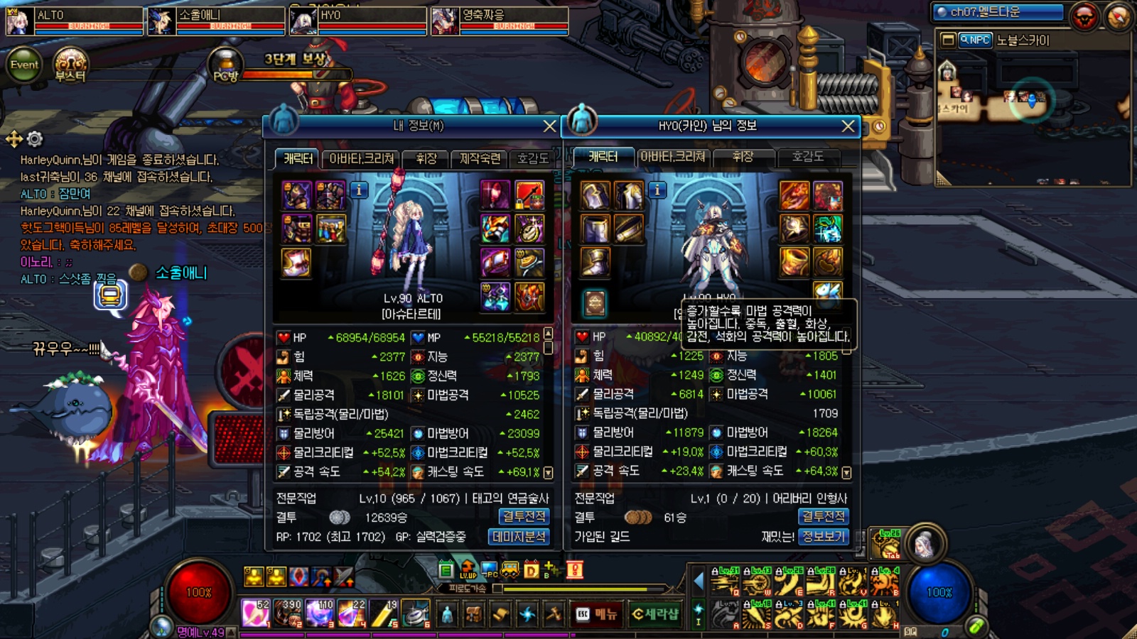 [배틀메이지] 자 다리를 터트렸습니다 ^^![]() ![]() ![]() 셋팅을 최대한 비슷하게 해볼려다 퀘전 2(그라) 퀘전3(서녁) 이딴식으로 딸수가 없어서 최대한 비슷하게 맞춰볼려고 노력했습니다. 최소한 저사진보다 이스펙이 더좋다고 생각함 ㅇ 영지 - 망무 싀칭 소울 / 카이 / 3100 체홀 46 18(정확한 수치는 기억안남) 무튼 대꼬감 http://vod.afreecatv.com/PLAYER/STATION/18128975 영상은 여기서 1:32:20 초부터 보시면 됩니다. 연기 격전지를 깨는데 염제님이 그냥 다죽이셔서 딜체크를 못했음 그래서 카이셋팅만 입고 딜하라했구 홀리님 스펙이 워낙 좋으셔서 지능작한거 다씹어드시고 힘수치가 무진장 올라가 '문무겸비' 로 조정되서 셋팅을 낮춤 45/13 으로 |