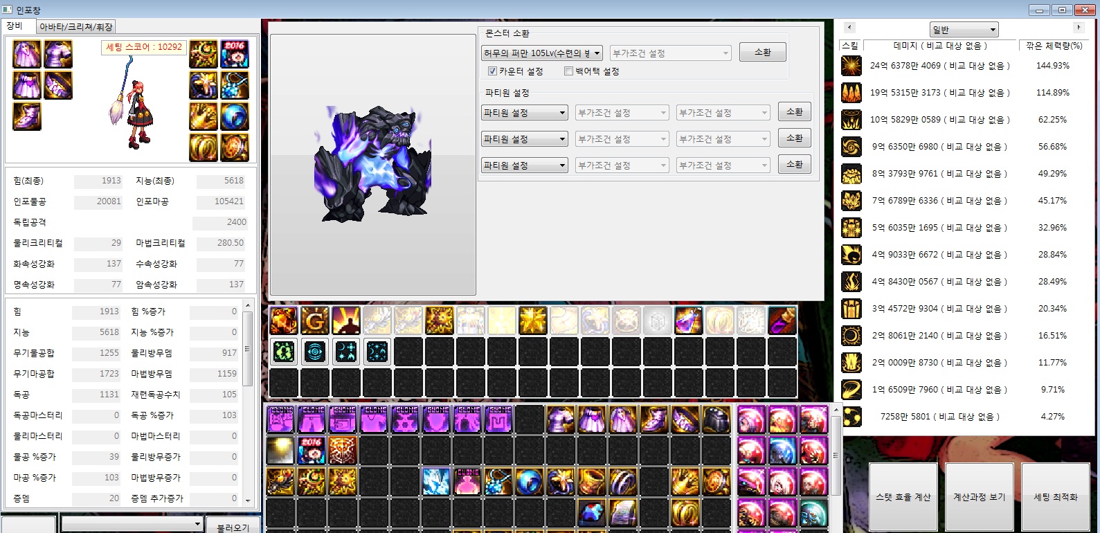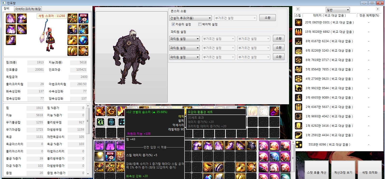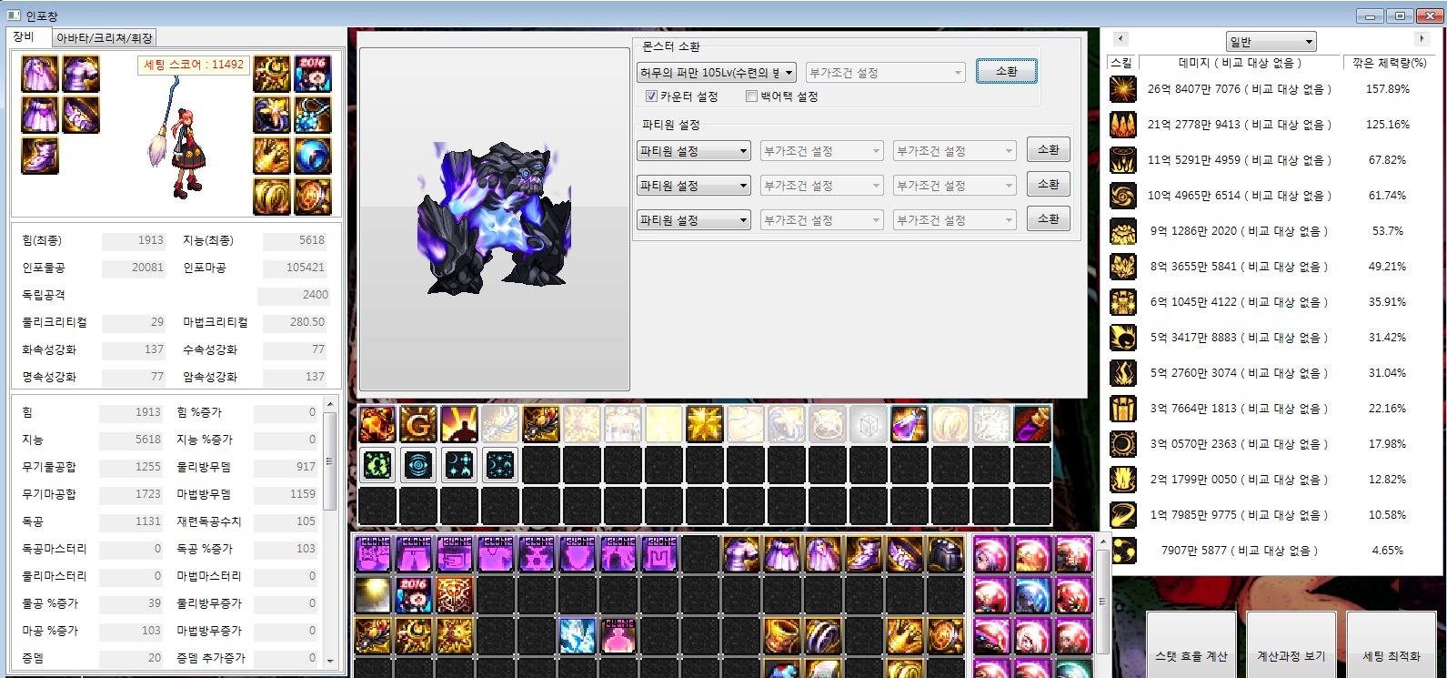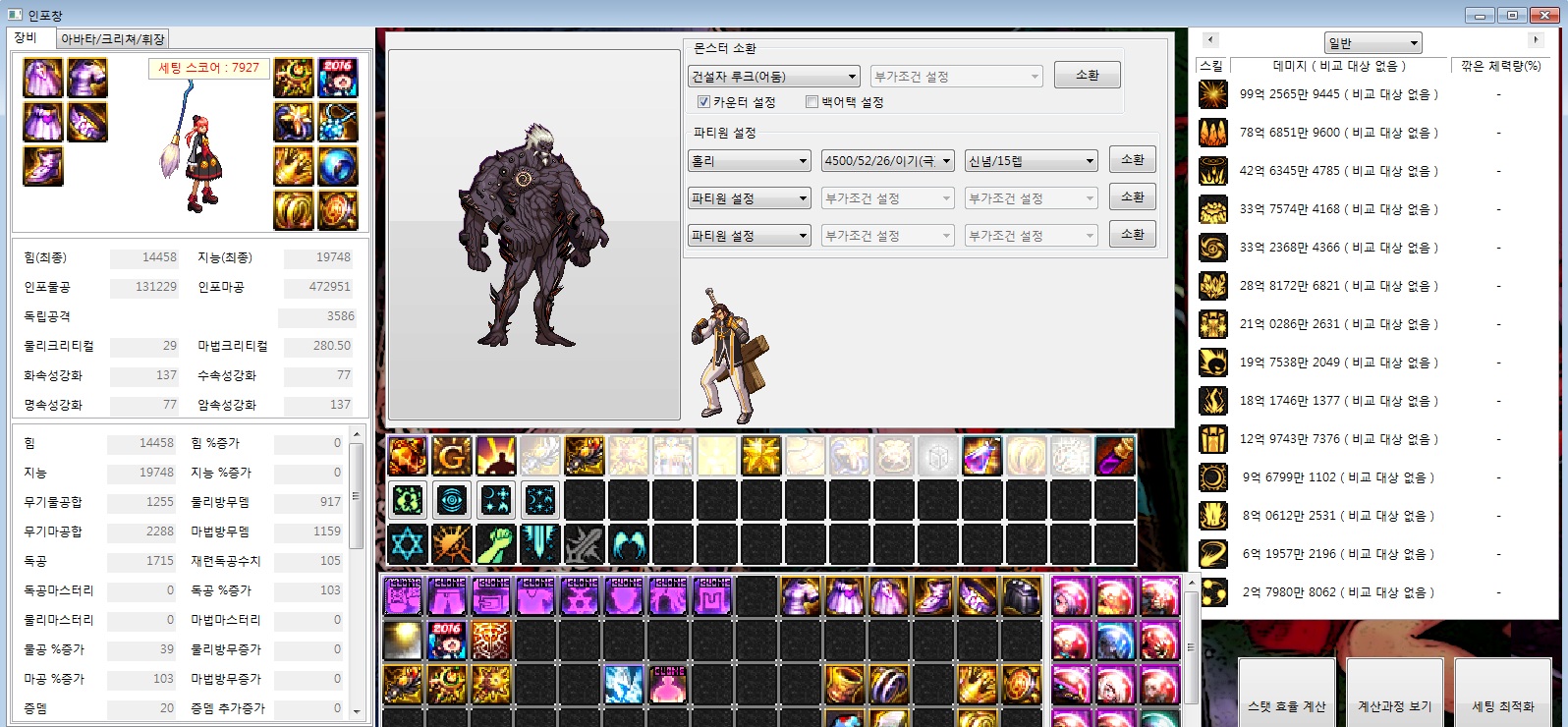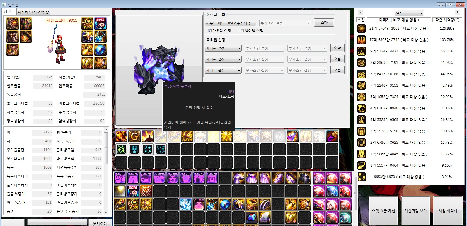 [엘레멘탈마스터] 수련방+계산기를 이용한 게슈, 핀드, 초대륙의 비교계산기 - 수련방을 최대한 맞춘상태의 게슈 핀드 초대륙 비교입니다. 게슈 핀드 초대륙은 전체 12증폭으로 계산하였습니다. 우선 정확한 표본을 위해 수련방과 계산기를 맞췄습니다. 오차는 노스위칭 1천 이내 스위칭 1억이내, 계산은 신뢰할만한 수준이라고 생각합니다. 전부 노버닝 입니다. 계산기의 스위칭은 실제 스위칭과는 다르게 실시간적용스킬인 1각같은경우에도 스위칭 적용데미지로 표기되니 2각만 비교하시는게 좋을거라고 생각됩니다. 1. 노스위칭 수련방딸치실 분이라면 게슈셋은 후회없는 선택이라고 생각됩니다. 4. 게슈 VS 핀드 VS 초대륙 (루크할배=방깎 12.5%적용) 근소한 차이로 게슈가 이기게 됩니다. 아래 스샷은 방깎 12.5%의 적용에 대한 내용입니다. 보스 방깎50%감소가 적용되어있습니다. 그래도 게슈셋이 근소한 차이로 이기게됩니다. 2각만 비교하여, 1인 기준으로는 게슈, 핀드, 초대륙의 데미지는 비슷하게 나오게됩니다. 하지만 홀리 버프를 받게될시, 그리고 그 홀리의 스펙이 올라갈수록 초대륙 > 핀드 > 게슈 순서 바뀌게 됩니다. 홀리의 스펙이 점점 더 올라가게 되면 핀드 > 초대륙 > 게슈의 순서로 바뀌게됩니다. 나중에는 핀드가 게슈보다 4억가까이 쌔집니다. 그러나 헤블론의 영광이 속추로 적용되면 게슈가 압도적으로 높아집니다. 5. 게슈 VS 핀드 VS 초대륙 (루크할배=방깎 12.5%적용, 엔드스펙 홀법적용) 6. 게슈 VS 핀드 VS 초대륙 (루크할배=방깎 12.5%적용, 엔드스펙 홀법적용, 헤블론 속추 적용) 게슈에 추뎀이 없다보니 이런결과가 나오는듯한데요 우선 이러한 상황입니다. 그래서 더 궁금하신 여러분들을 위하여 황홀 VS 무탐을 비교해보았습니다. 7. 황홀 VS 무탐 비교 황홀 VS 무탐 수련방에서의 퍼만입니다. 근소한 차이로 무탐이 앞섭니다. 9. 황홀 VS 무탐 비교 (보스 대상 비교) 근소한 차이로 황홀이 앞서갑니다. 참고로 홀법 적용시키면 황홀이 10억 정도 높게 나옵니다. 그리고 헤블론의 영광이 속추로 적용된상태라면 15억 넘게 차이가 납니다. 10. 황홀 VS 무탐 비교 (보스 대상 비교, 엔드스펙 홀법, 헤블론 속추 적용) 세줄 요약 1. 수련장딜딸 칠경우 게슈 > 핀드 > 초대륙 순서, 보스 대상시 게슈 > 핀드 > 초대륙(매우근소한 차이) 2. 홀법, 헤블론 스증뎀 적용시 핀드 > 초대륙 > 게슈, 속추 적용시 게슈 > 초대륙 > 핀드 3. 황홀 무탐 비교 시 1인 퍼만 기준 무탐 > 황홀, 홀법 적용시 황홀 > 무탐, 헤블론 속추 적용시 황홀>>>>>>>>>무탐 이상입니다. |