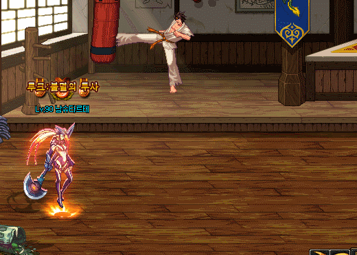 대쉬공격을하며 ↑ 또는 ↓ 방향키를누르면 거의 제자리에서 공격가능합니다 |