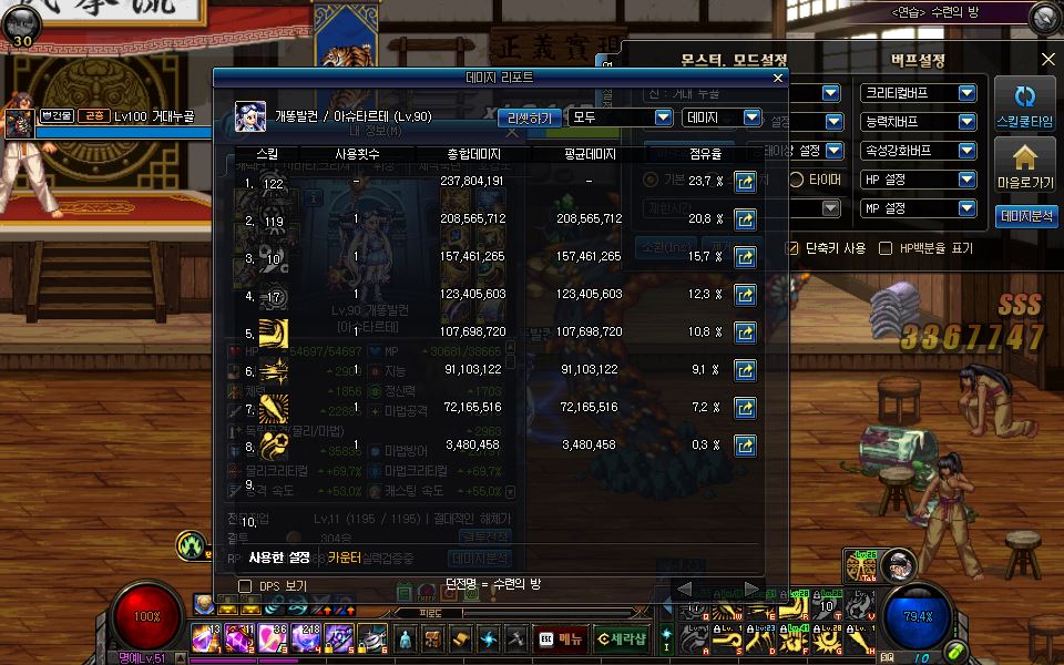 [배틀메이지] 풀플풀 -> 천년풀 딜표 및 후기