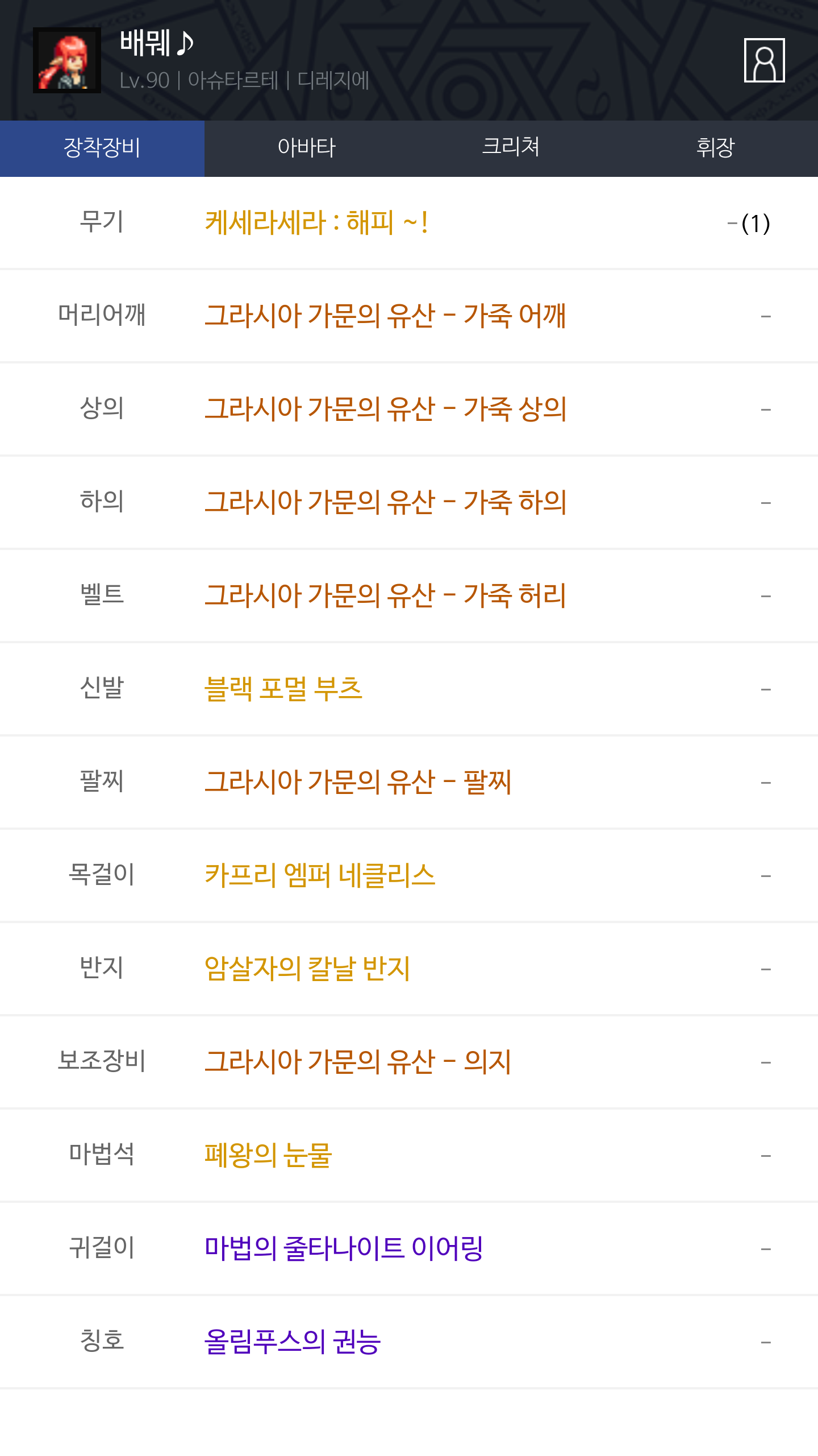 오늘 약3주간 레이드11캐릭 꾸준히 뒷풀까지돌아 초월했슴니다. 1재련이라 더욱약해졌슴니다. 누골1억 살짝안나오네 국민도핑 달계 짭젤로. 8재련하면 1.5억은 뜨겠죠? 점점 자이기 자에픽캐릭이늘어갑니다. 기분좋군요. 검신.이기대검 수라.이기소검 여스핏.이기머스켓 홀리.라바룸 인파.쿵쿵따 여넨.넨클 베미.케세라 점점 캐릭키울맛이 납니다. 모두들 초월하세욥.ㅎ from Mobile