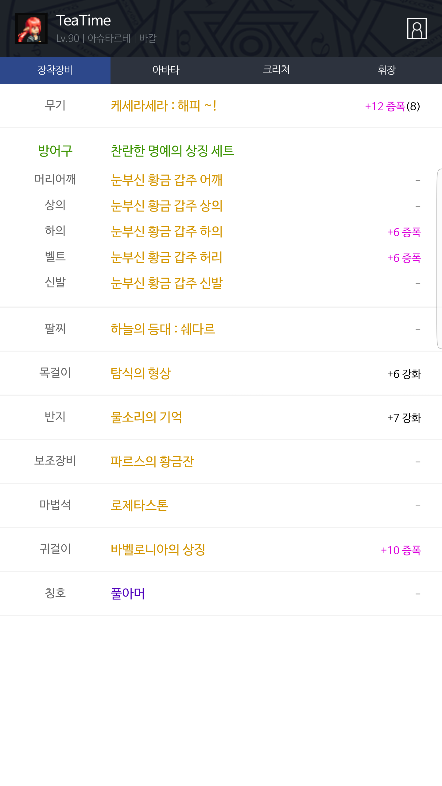 메지컬테아나를 찍은것보다 안찍은게 딜이 조금 더 세던데 여러분은 어떻게 하셨나요! 2. 똑같이 앞뎀 패치이후 황룡천공보다 난무가 더 셉니다! 사출 안쓰고 누고리 5번 정도 쳐봤는데 여러분은 어떤가요! 3. 아직 루크 1회도 못 가봤지만 한 1년뒤 가능할거 같은 업글픽 생각인데요. 또대륙 이랑 또홀경 이랑 옵션이 겹쳐서 무탐 3종 올리는데 더 좋다는 분이 있던데 사실임니까! 4. 업글픽 샐러드랑 또대륙이랑 어느게 낫나요! 창고에 핀드가 더 좋을거 같애서 먹어둔 블포 3부위가 있는데 냅둘까요! from Mobile