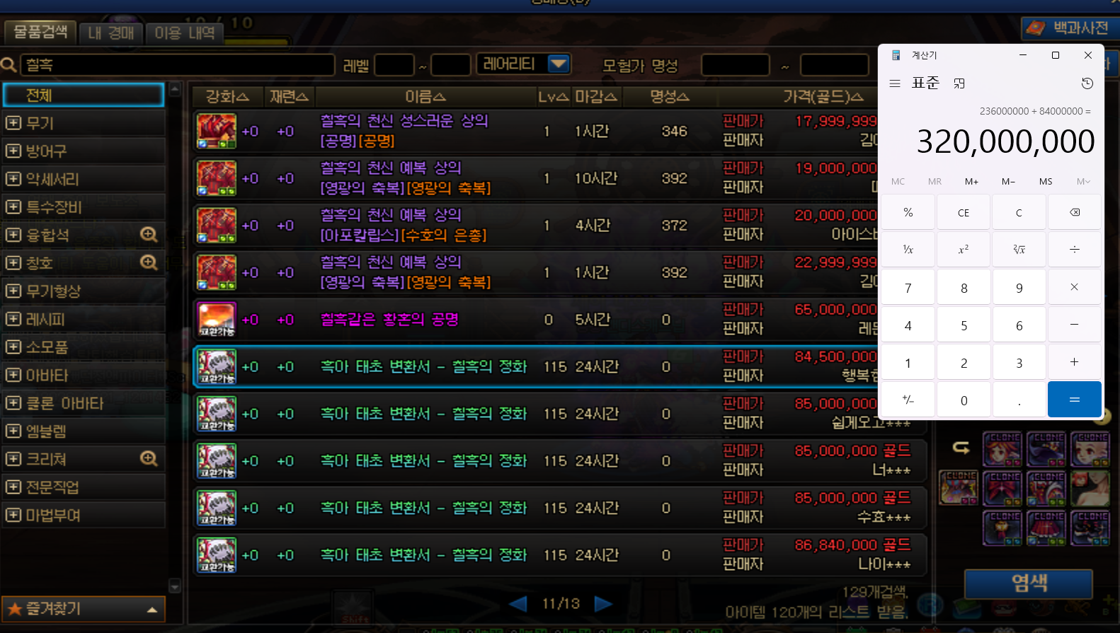- ㆍ[정보] 크리쳐 갱신후에 11테아나 무지 역전된 세트, 캐릭...