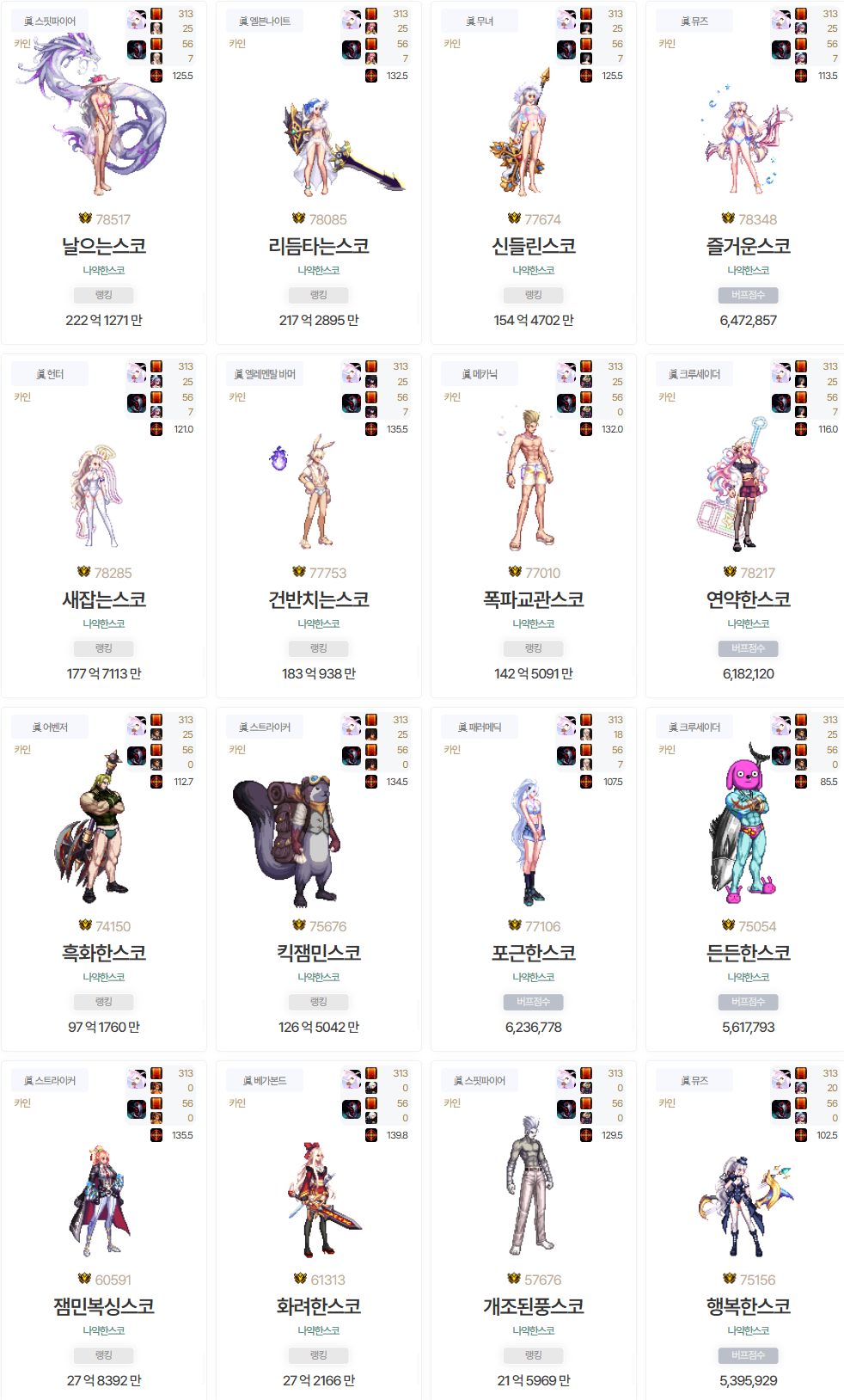헌붕이랑 우럭 어떻게든 똥꼬쇼하지만 지금 상황보면 가망 그리 없음 (운빨로 얻어야되는 디테일한 고유작 약간남음) 거기에 우럭은 고유가 엔드급 근처에 에픽조율도 후반부를 달리는중인데 답없어보임. 그림자로는 200억 못찍을 거 같음(하쿠나 초월해도 4퍼 올라서 거의 안된다 보는중) 스킬트리 최적화하면 오를 수 있겠지만.. 그거는 대부분이 지금 만족도 최상인 스킬트리들이라 진짜 웬만해선 하고싶지않음.