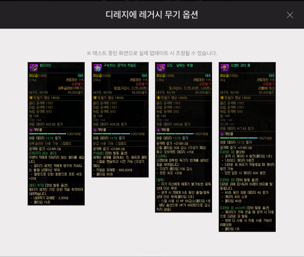 - ㆍ[정보] 크리쳐 갱신후에 11테아나 무지 역전된 세트, 캐릭...