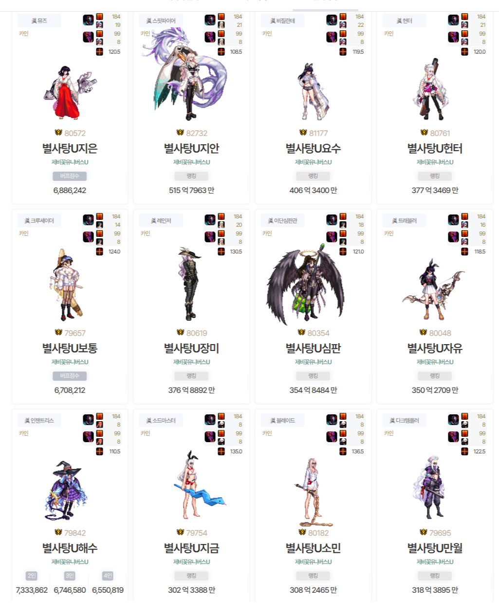 - ㆍ[정보] 크리쳐 갱신후에 11테아나 무지 역전된 세트, 캐릭...