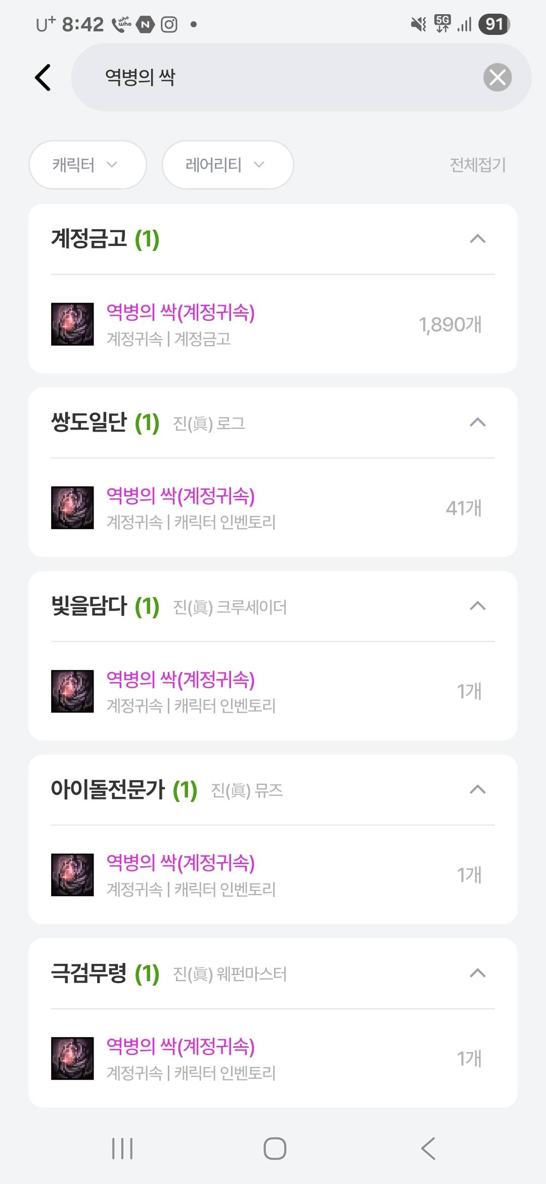 - ㆍ[정보] 크리쳐 갱신후에 11테아나 무지 역전된 세트, 캐릭...