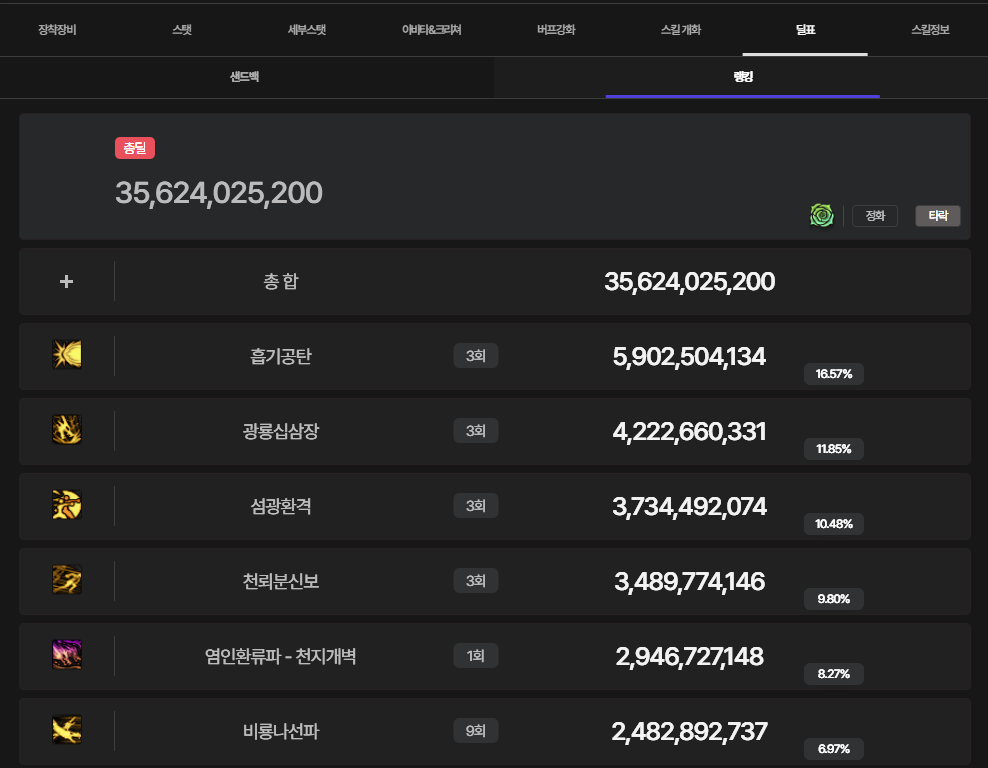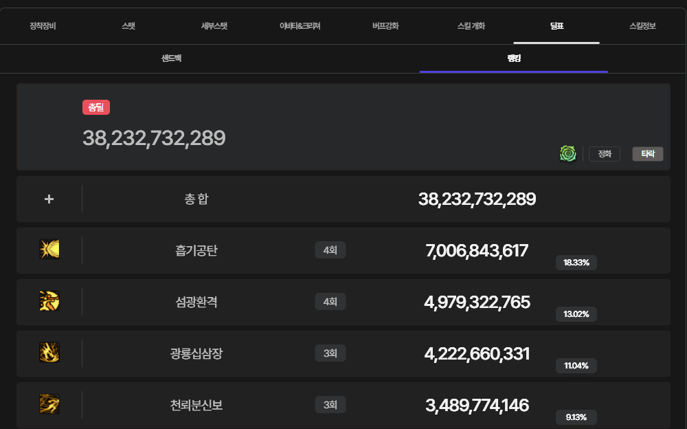 악연 보낼때는 380억으로 던담찍어두고 실전갈땐 밑에 스킬트리로 가야될듯 어쨌든 380억만큼 딜을 뽑으니까