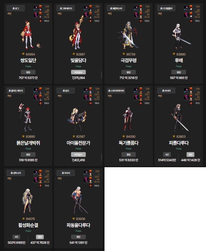 - ㆍ[정보] 크리쳐 갱신후에 11테아나 무지 역전된 세트, 캐릭...