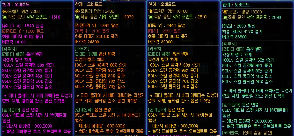 서약별 오버로드 1각 댐증수치는 유니크 이상일시 80%로 같음