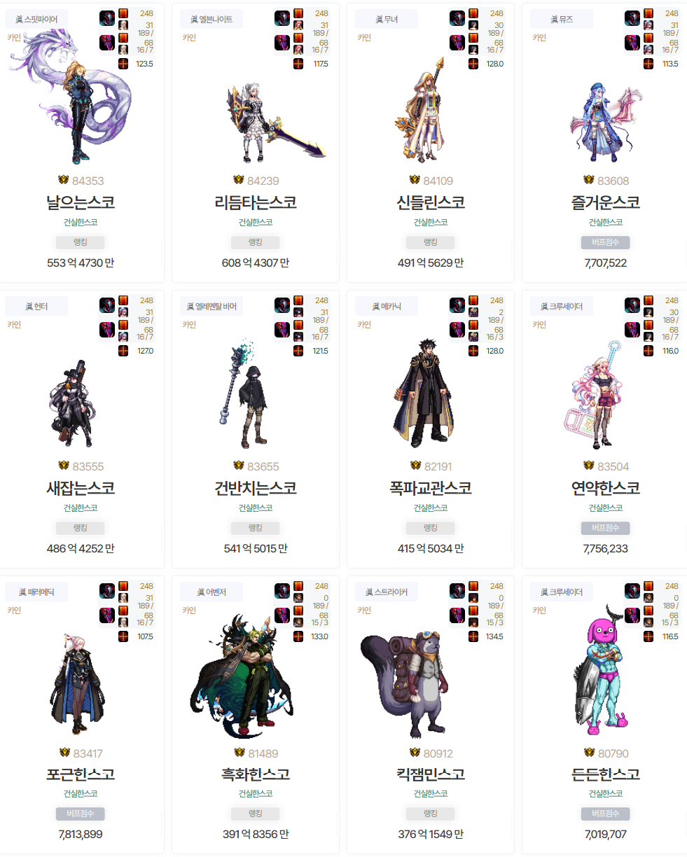 무튼 딜러들이 뭐 대단하진 않지만...? 여기서 만족하고. 버퍼들도 올리고싶어도 역량상 뭐 더 해줄 수 있는건 없는듯.